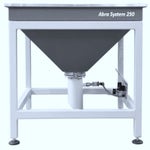 Dazu gehören: Schneidkopf mit Fokussierrohr und Diamant-Schneiddüse, rollbare Steuerung P 886 mit Windows 10 oder 11, Zyklen-Programm, Dosiersystem mit zwei Sichtfenstern, präzise Zahnstangen mit Ritzel, stabile Brückenkonstruktion, robuste Auflagefläche, Füllbehälter (Abra-System 250 oder optional 1.500), Schaltschrank.
